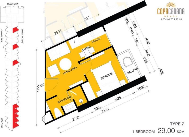 Copacabana Jomtien; high-rise building with an impressive array of amenities not normally found in residential condominiums, such as a cantilevered swimming pool on the 40th floor, rooftop lap pool on the 59th floor, fitness, sauna room, restaurant, 24 Hour concierge service and drop off point with valet parking.
