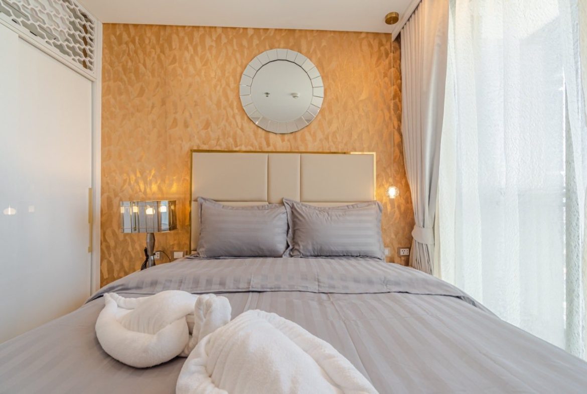 A fully furnished one bedroom apartment with all amenities on the 29 floor.