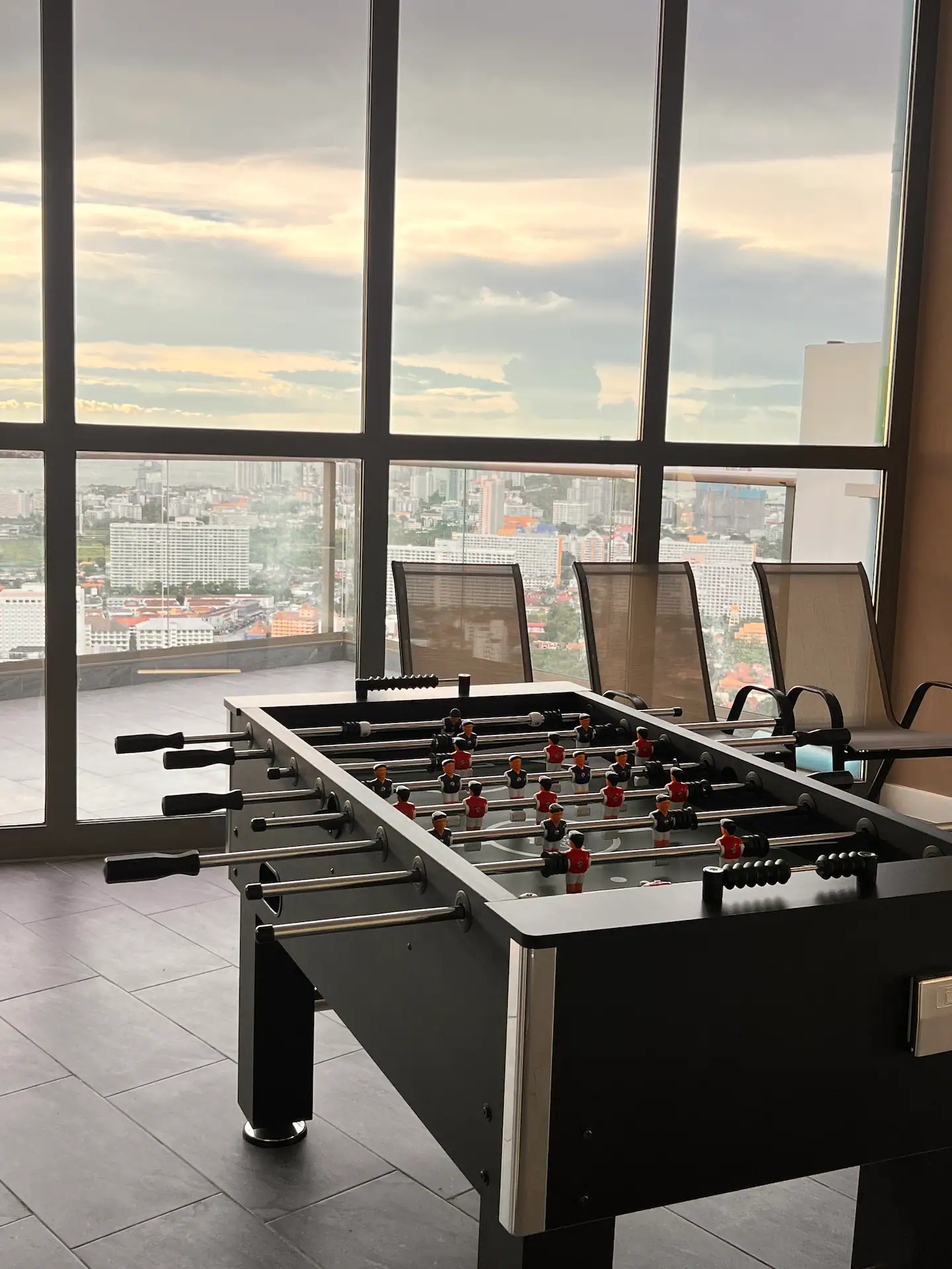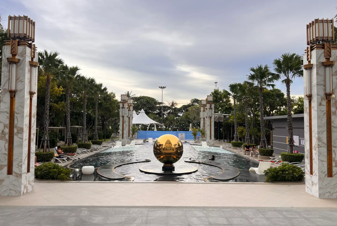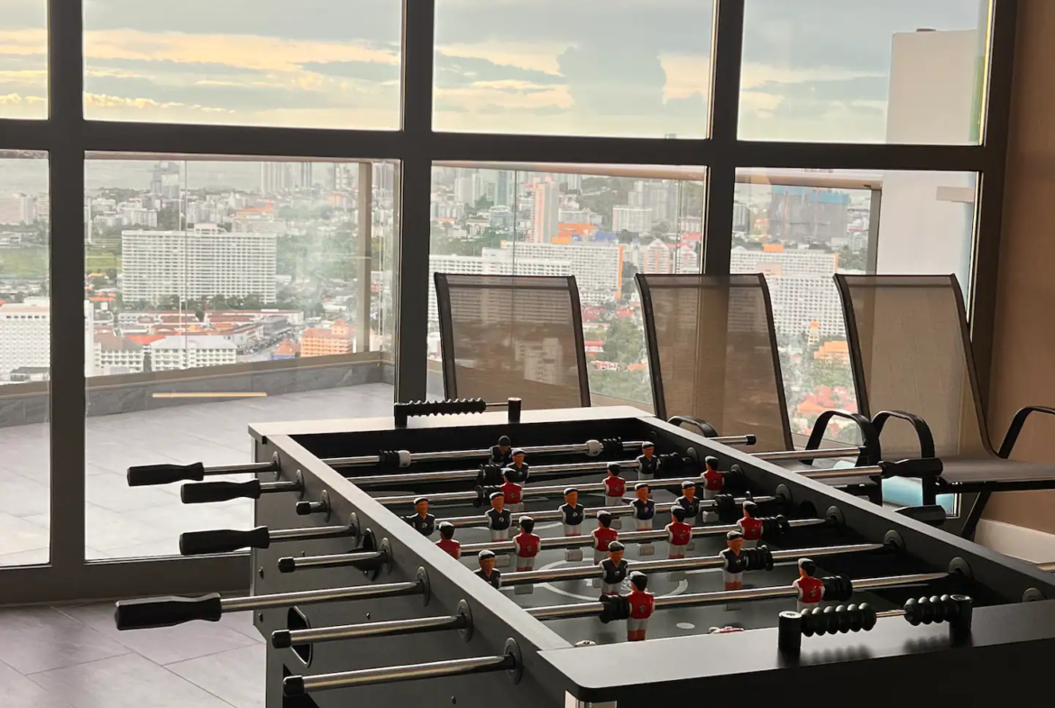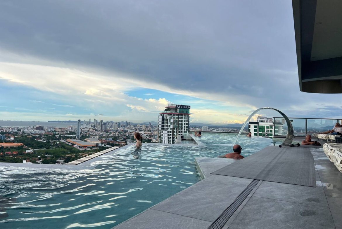 Copacabana Jomtien; high-rise building with an impressive array of amenities not normally found in residential condominiums, such as a cantilevered swimming pool on the 40th floor, rooftop lap pool on the 59th floor, fitness, sauna room, restaurant, 24 Hour concierge service and drop off point with valet parking.