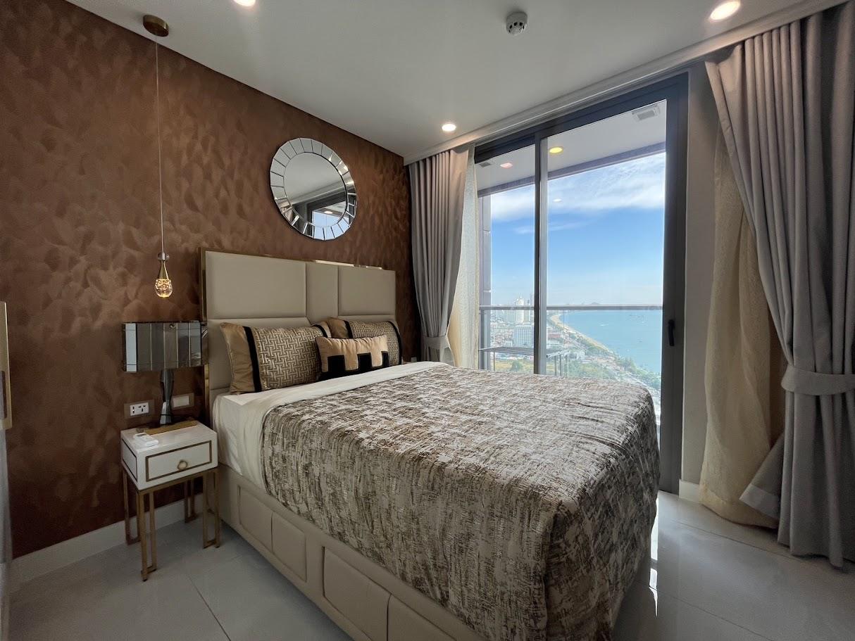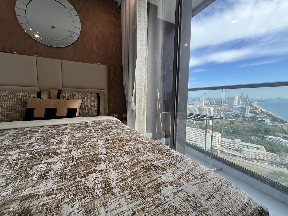 Copacabana Jomtien; high-rise building with an impressive array of amenities not normally found in residential condominiums, such as a cantilevered swimming pool on the 40th floor, rooftop lap pool on the 59th floor, fitness, sauna room, restaurant, 24 Hour concierge service and drop off point with valet parking.