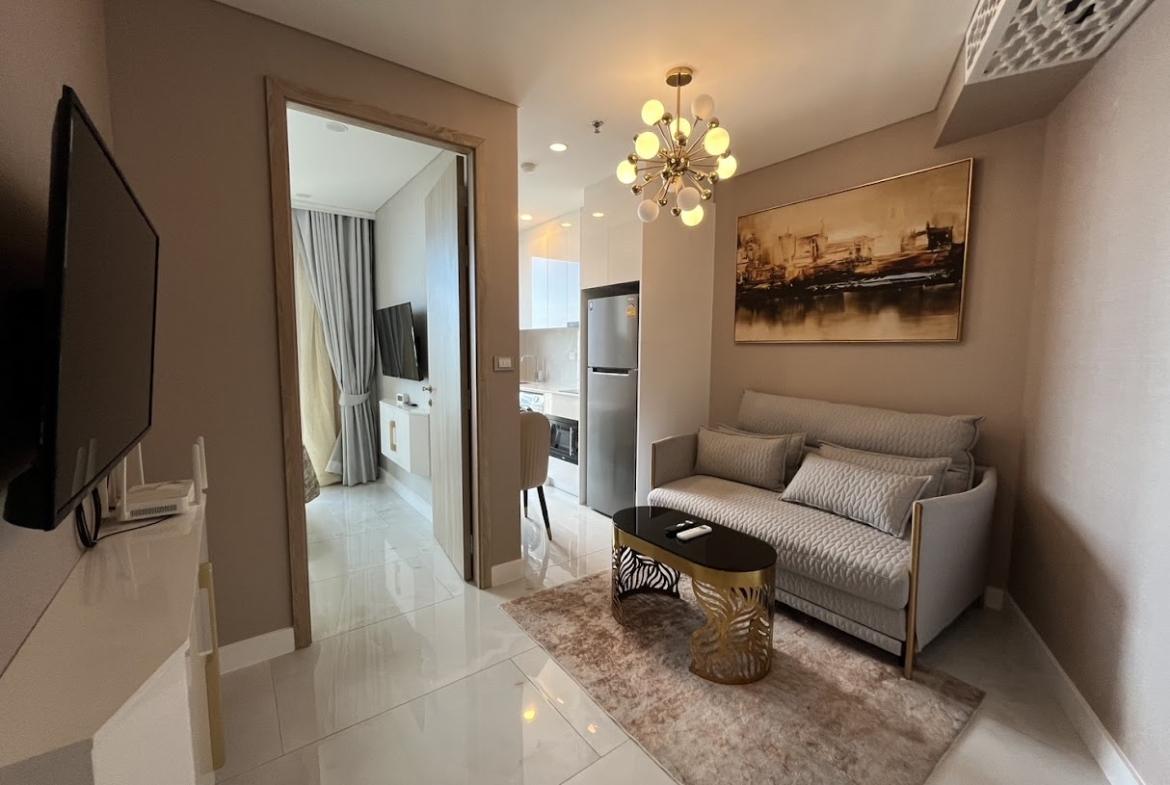 A fully furnished one bedroom apartment with all amenities on the 28 floor.