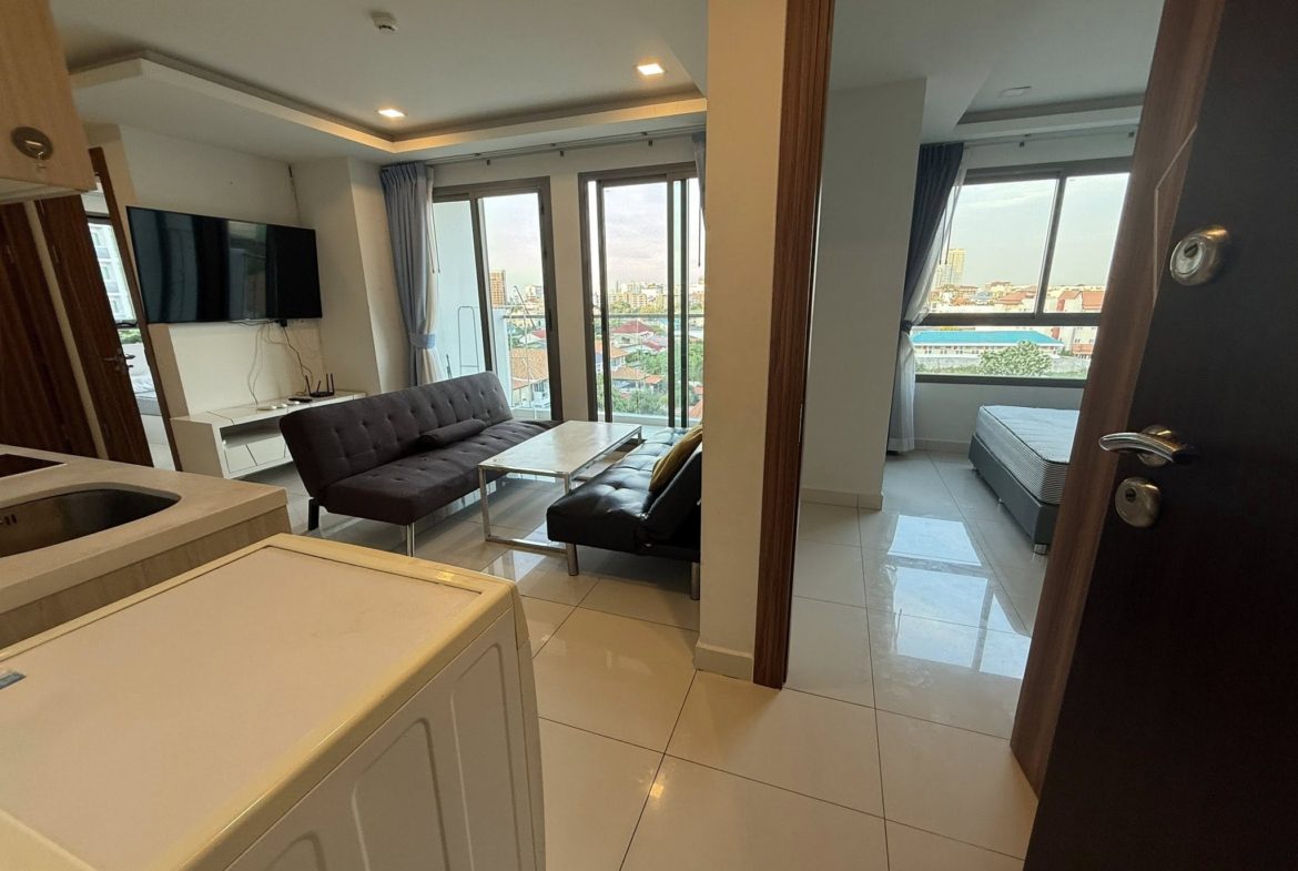 A fully furnished two-bedroom apartment with all amenities, for rent on the 5 floor, with city view
