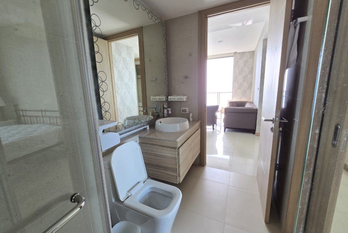 A fully furnished two-bedroom apartment with all amenities, on the 23 floor with sea view.