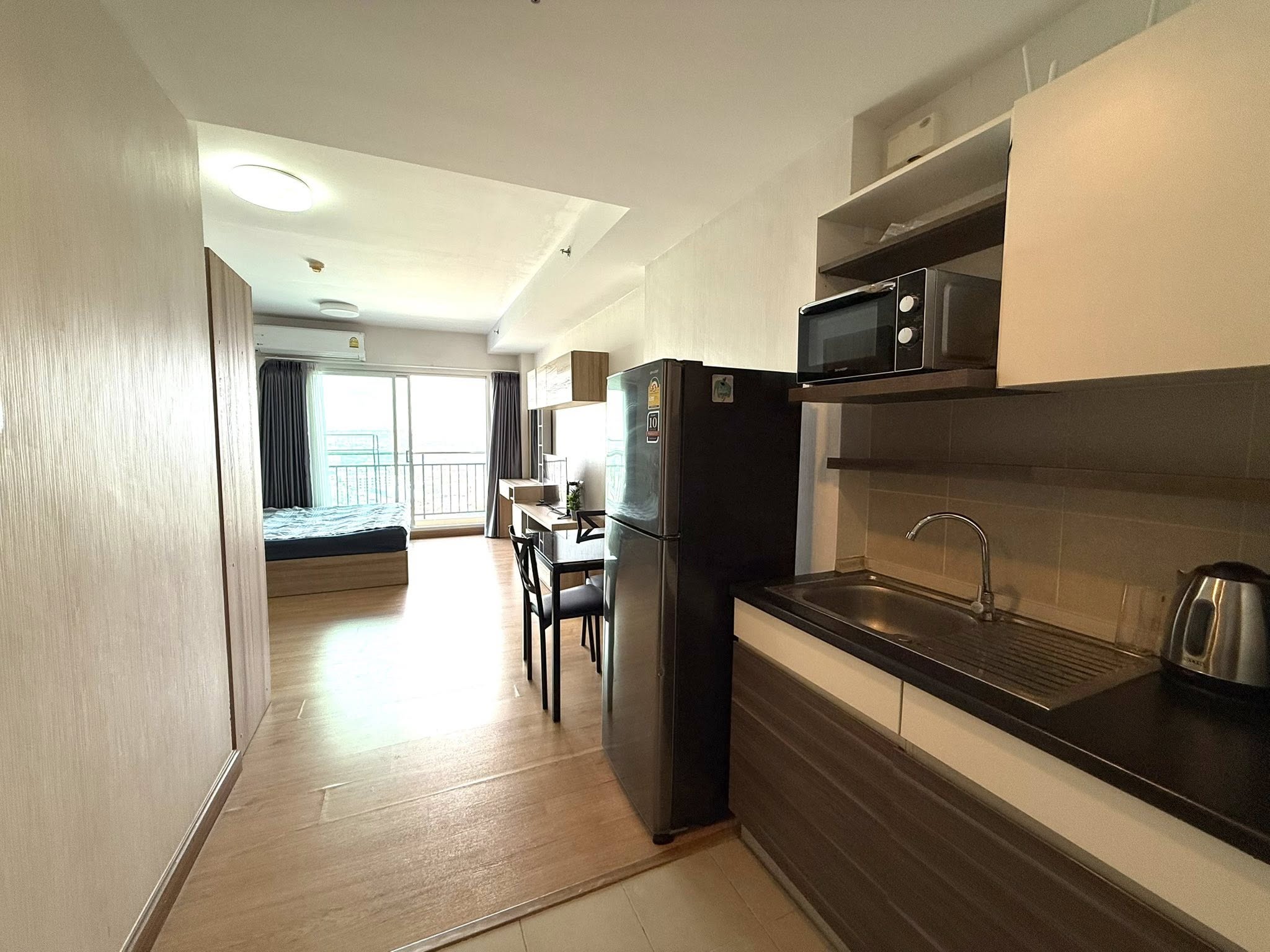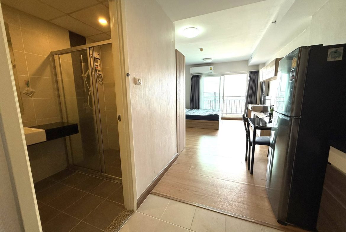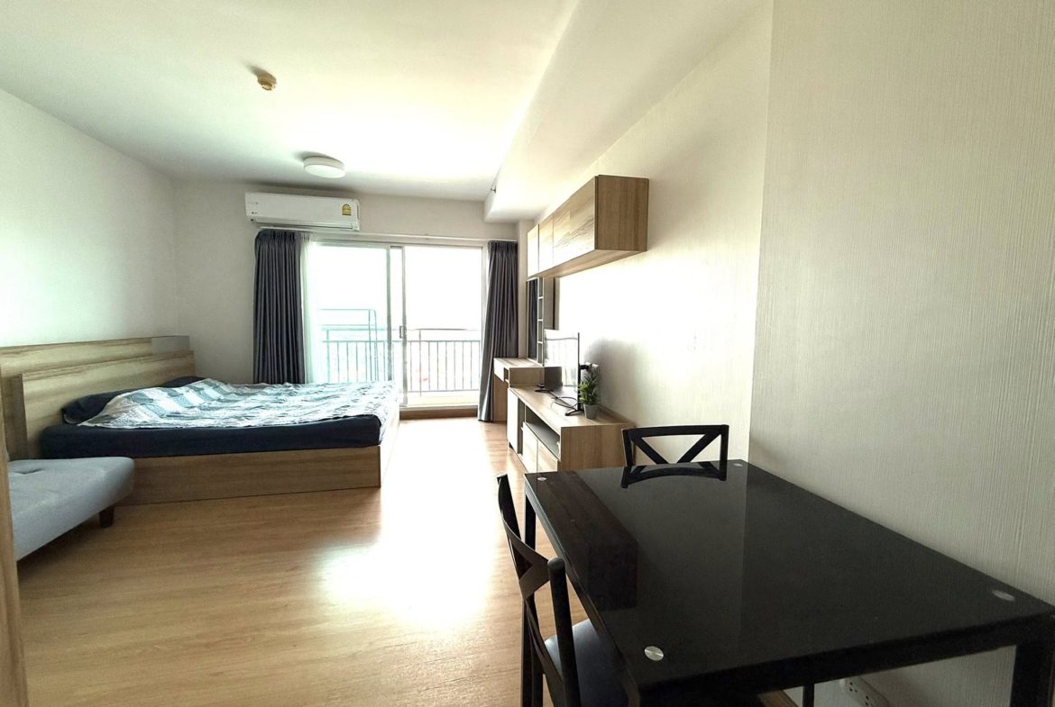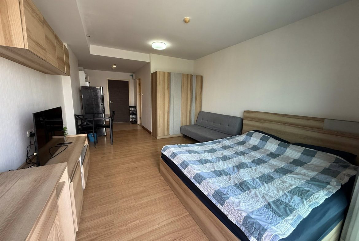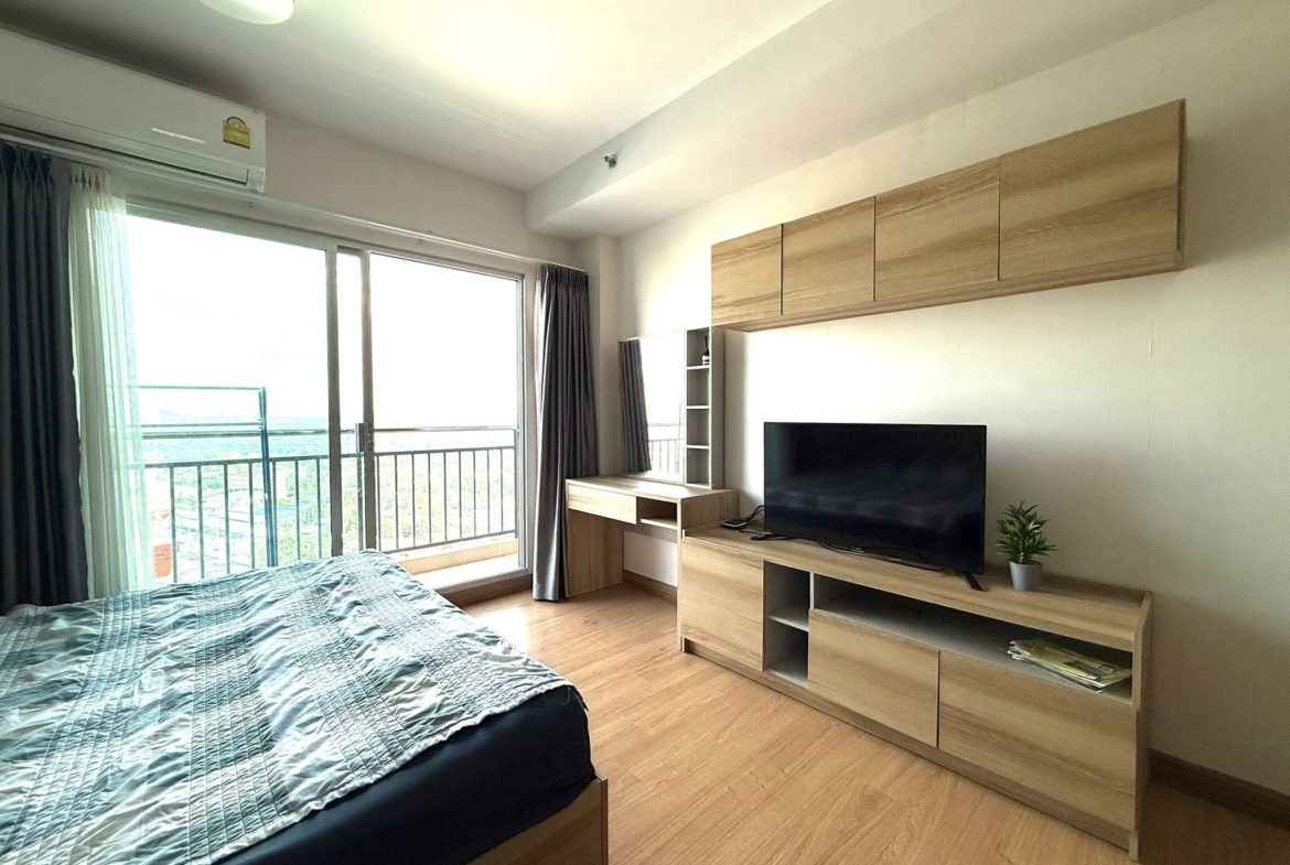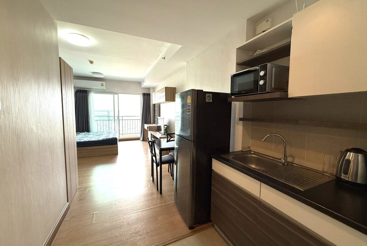 A fully furnished studio apartment with all amenities for sale on the 21 floor from 32 sqm. The condo has city view.